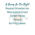 Notes: strawberry, mascarpone cream, honey, pecans, burning leaves