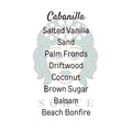 Salted vanilla, sand, palm fronds, driftwood, a cracked coconut, brown sugar, balsam of Peru, and a distant beach bonfire.