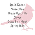 Notes: sweet pea • grape hyacinth • clover • dewy skin musk • spring rain