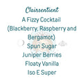 Notes: fizzy blackberry, raspberry and bergamot cocktail, spun sugar, juniper berries, floaty vanilla, woody musk and Iso E Super