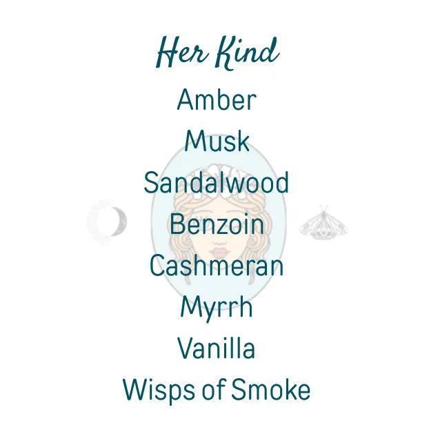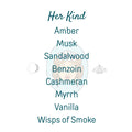 Her Kind creates a haze of dry vanilla and precious sandalwood and amber resins around its wearer - transparent, luminous, and multidimensional.