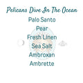 Notes: Bergamot, Pear, pink peppercorn, palo santo, fresh linen, sea salt, Ambroxan, sunlight playing off of clear blue water