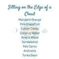 Inspired by a summer daydream of sitting on fluffy pink and orange sherbert-colored clouds, cotton candy is scented with mandarin orange and pink grapefruit, and grounded just a little with soft woods and slightly powdery tonka bean. An undercurrent of coconut water keeps everything light and creamy.