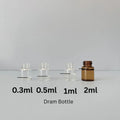 While each sample is carefully made using precision tools, there may be slight variations due to the hand-filled nature. Containers may be larger than the sample itself, so it may not come all the way filled as this also helps with preventing overflow and leakage. Dram bottles are amber glass, but due to supplier availability, dram bottles may come in clear glass at times.