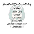 Warm peach cake spiced with ginger, cinnamon, and cardamom; vanilla bean ice cream, Indian sandalwood Mysore, Australian sandalwood.
