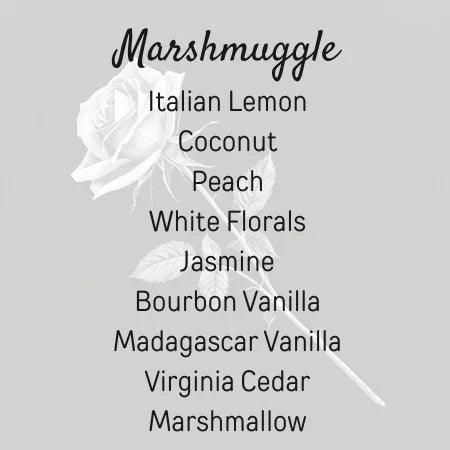 Notes: Italian Lemon • Coconut • Peach • White Florals • Jasmine • Bourbon Vanilla • Madagascar Vanilla • Virginia Cedar • Extra Warm and Gooey Marshmallow