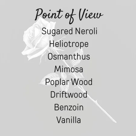 Notes: Sugared Neroli • Heliotrope • Osmanthus • Mimosa • Poplar Wood • Driftwood • Benzoin • Vanilla